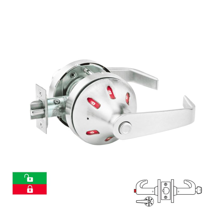 Sargent 60-V03-10XG44-VSLL Service Station Function Cylindrical Lock, Visual Indicator Trim Inside Only, Green/Red, LFIC, Less Core, Grade 1, "VSL" Rose, "L" Lever Design, 2 3/4 Backset, 4 7/8 Strike