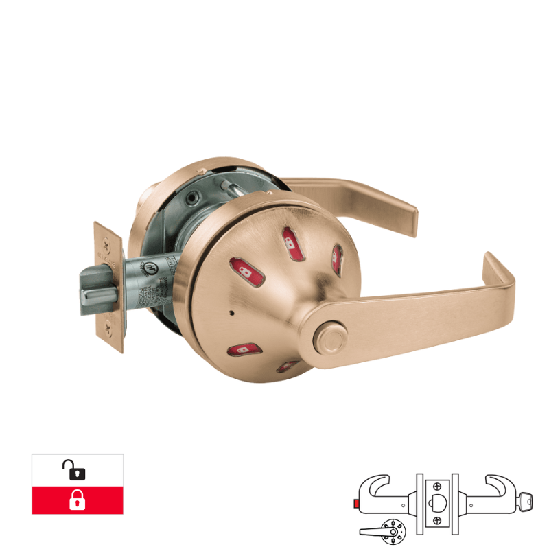Sargent's Grade 1 cylindrical lock delivers institutional-grade security for service station applications. The LFIC (Less Core) design enables quick core replacement without removing the lock body, reducing maintenance downtime. Visual indicator trim on the inside provides immediate occupancy status at a glance. Features a durable "VSL" rose with "L" lever design, 2 3/4" backset, and 4 7/8" strike for standard door preparations. White and red indicator colors ensure clear visibility in high-traffic environments.
