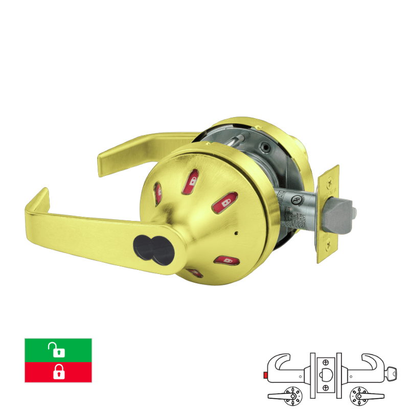 Sargent 60-V33-10XG24-VSLL Entrance or Office Function Cylindrical Lock, Green/Red, 2 3/4 Backset, 4 7/8 Strike, LFIC, Less Core, Grade 1, "VSL" Rose, "L" Lever Design, Visual Indicator Trim Both Sides