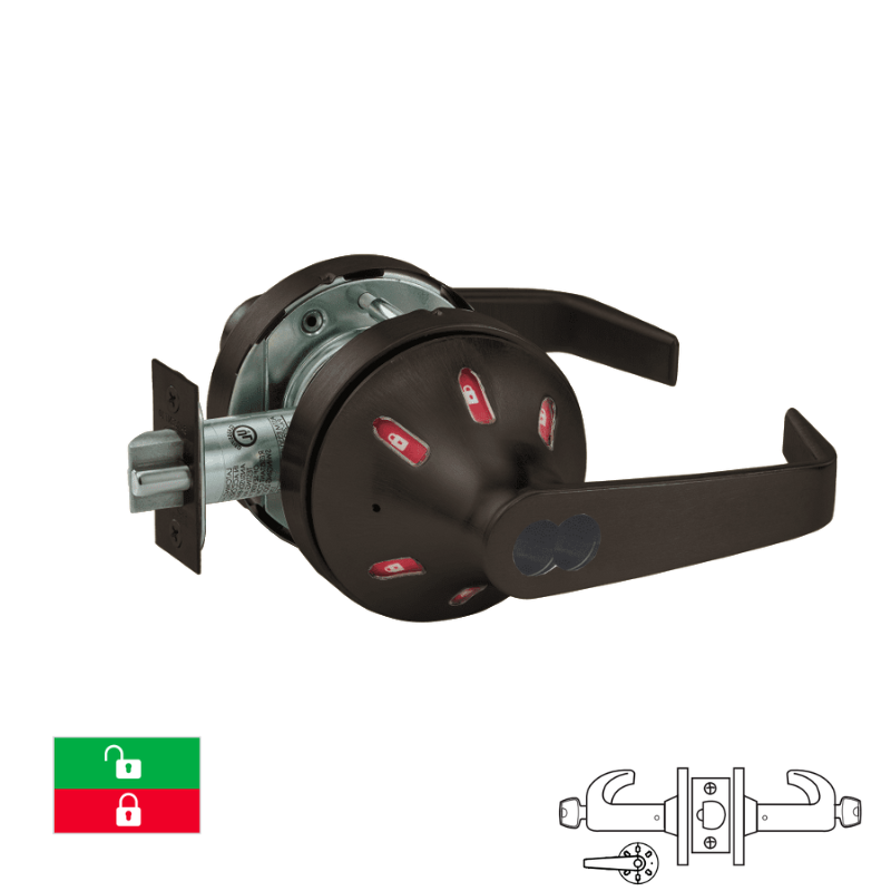 Sargent 70-V03-10XG38-VSLL Classroom Security Intruder Function Cylindrical Lock, Green/Red, SFIC, Less Core, Grade 1, "VSL" Rose, "L" Lever Design, Visual Indicator Trim Inside Only, 2 3/4 Backset, 4 7/8 Strike