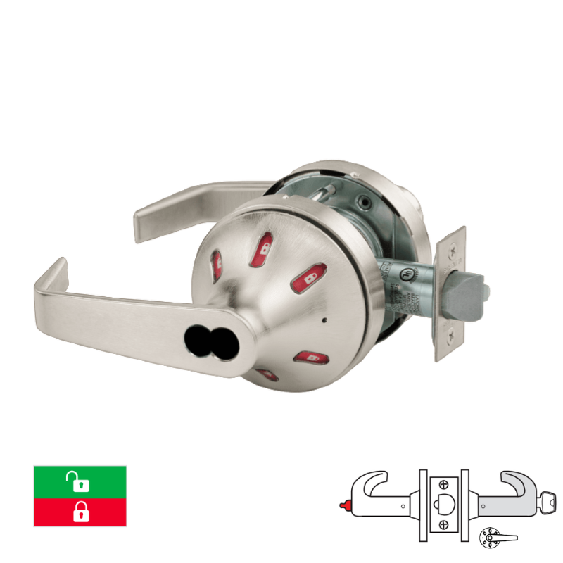 Sargent 60-V30-10XG05-VSLL Office Function Cylindrical Lock, "VSL" Rose, "L" Lever Design, Visual Indicator Trim Outside Only, Green/Red, 2 3/4 Backset, 4 7/8 Strike, SFIC, Less Core, Grade 1