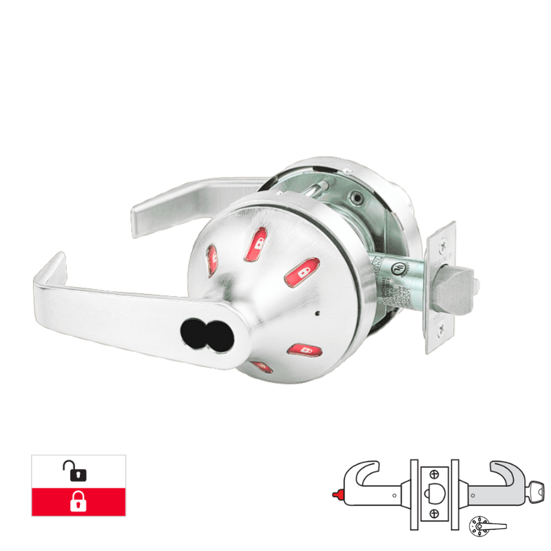 Sargent 60-V60-10XG05-VSLL Office Function Cylindrical Lock, "VSL" Rose, "L" Lever Design, Visual Indicator Trim Outside Only, White/Red, 2 3/4 Backset, 4 7/8 Strike, SFIC, Less Core, Grade 1