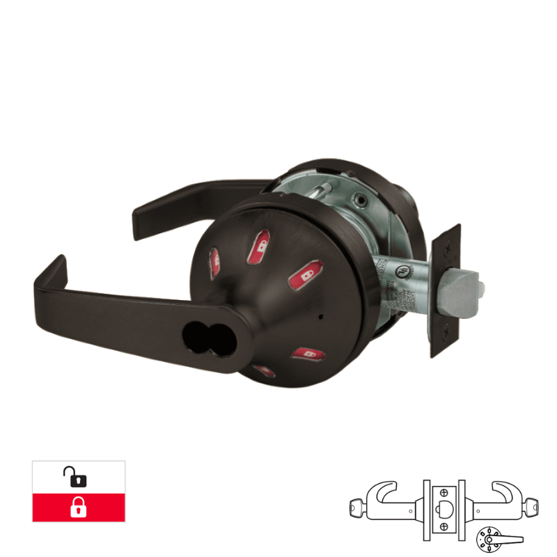 Sargent 70-V60-10XG38-VSLL Classroom Security Intruder Function Cylindrical Lock, White/Red, SFIC, Less Core, Grade 1, "VSL" Rose, "L" Lever Design, Visual Indicator Trim Outside Only, 2 3/4 Backset, 4 7/8 Strike