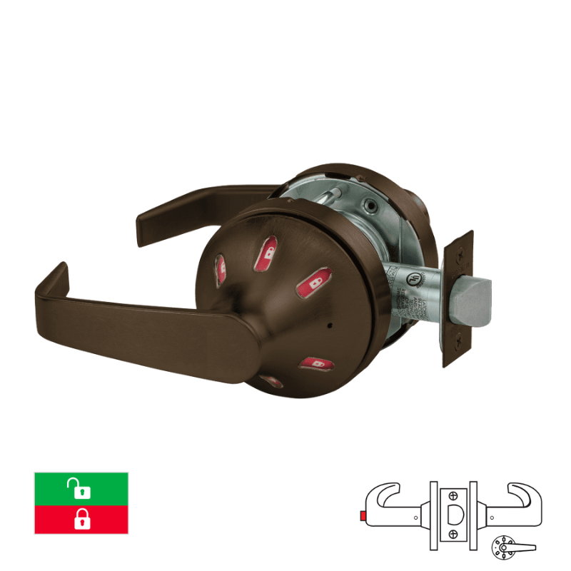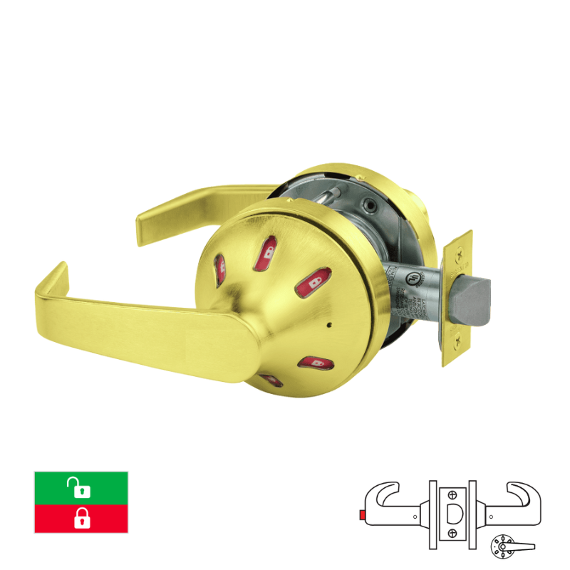 Sargent V30-10XU65-VSLL Privacy/Bathroom Function Cylindrical Lock, "VSL" Rose, "L" Lever Design, Visual Indicator Trim Outside Only, Green/Red, 2 3/4 Backset, 4 7/8 Strike, Non-Keyed, Grade 1