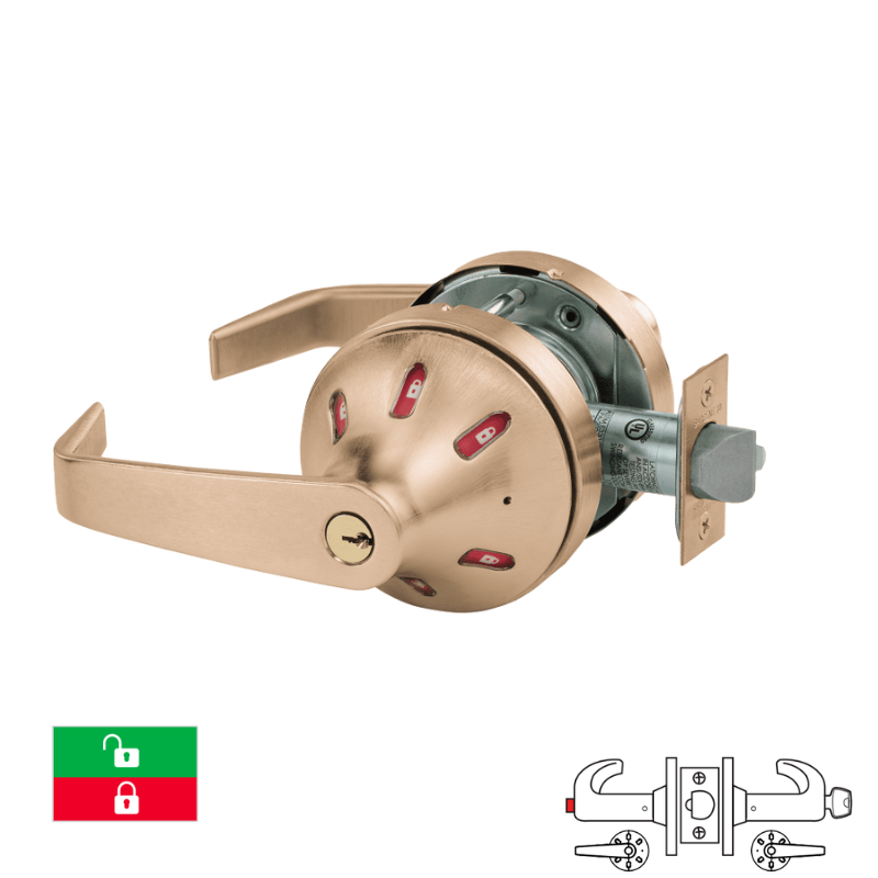 Sargent V33-10XG44-VSLL-LAKD Service Station Function Cylindrical Lock, Visual Indicator Trim Both Sides, Green/Red, Grade 1, "VSL" Rose, "L" Lever Design, 2 3/4 Backset, 4 7/8 Strike, LA Keyway Keyed Random [2] Keys