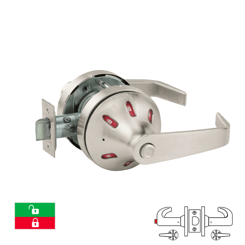 Sargent V33-10XU65-VSLL Privacy/Bathroom Function Cylindrical Lock, "VSL" Rose, "L" Lever Design, Visual Indicator Trim Both Side, Green/Red, 2 3/4 Backset, 4 7/8 Strike, Non-Keyed, Grade 1