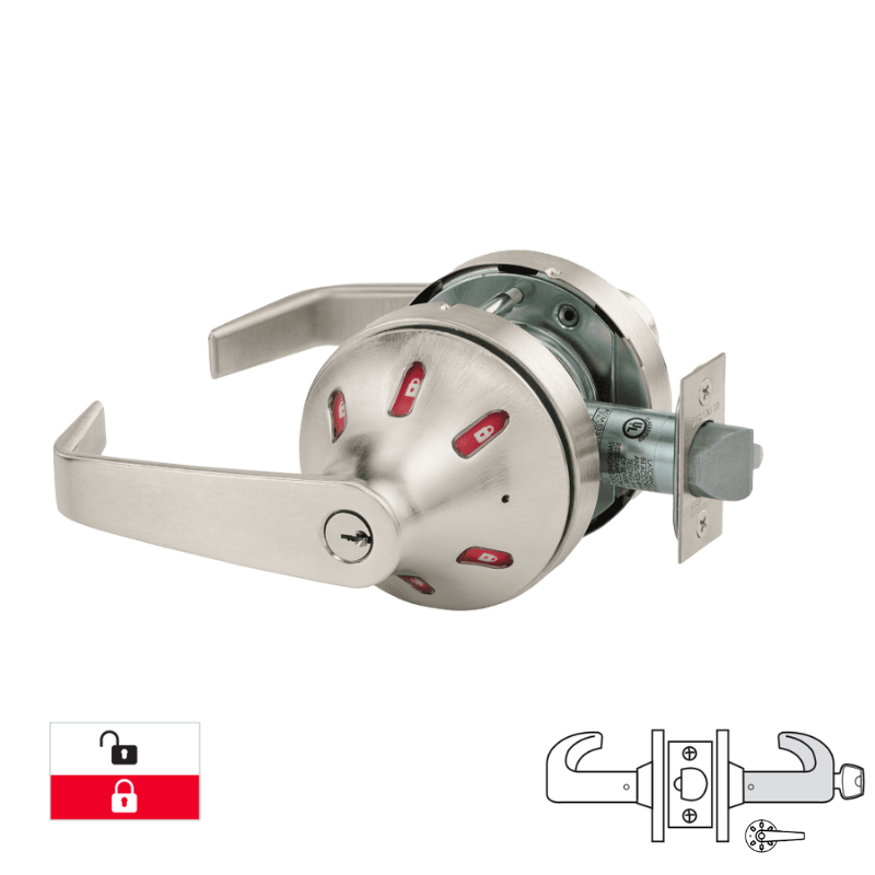 Sargent V60-10XG05-VSLL-LAKD Office Function Cylindrical Lock, "VSL" Rose, "L" Lever Design, Visual Indicator Trim Outside Only, White/Red, 2 3/4 Backset, 4 7/8 Strike, LA Keyway Keyed Random [2] Keys, Grade 1