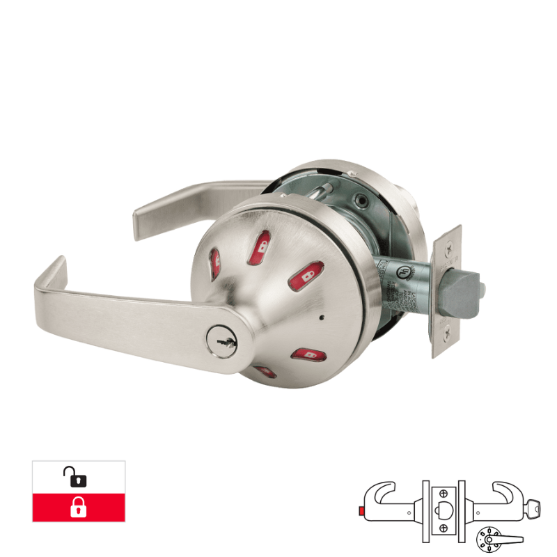 Sargent V60-10XG44-VSLL-LAKD Service Station Function Cylindrical Lock, Visual Indicator Trim Outside Only, LA Keyway Keyed Random [2] Keys, Grade 1, "VSL" Rose, "L" Lever Design, White/Red, 2 3/4 Backset, 4 7/8 Strike