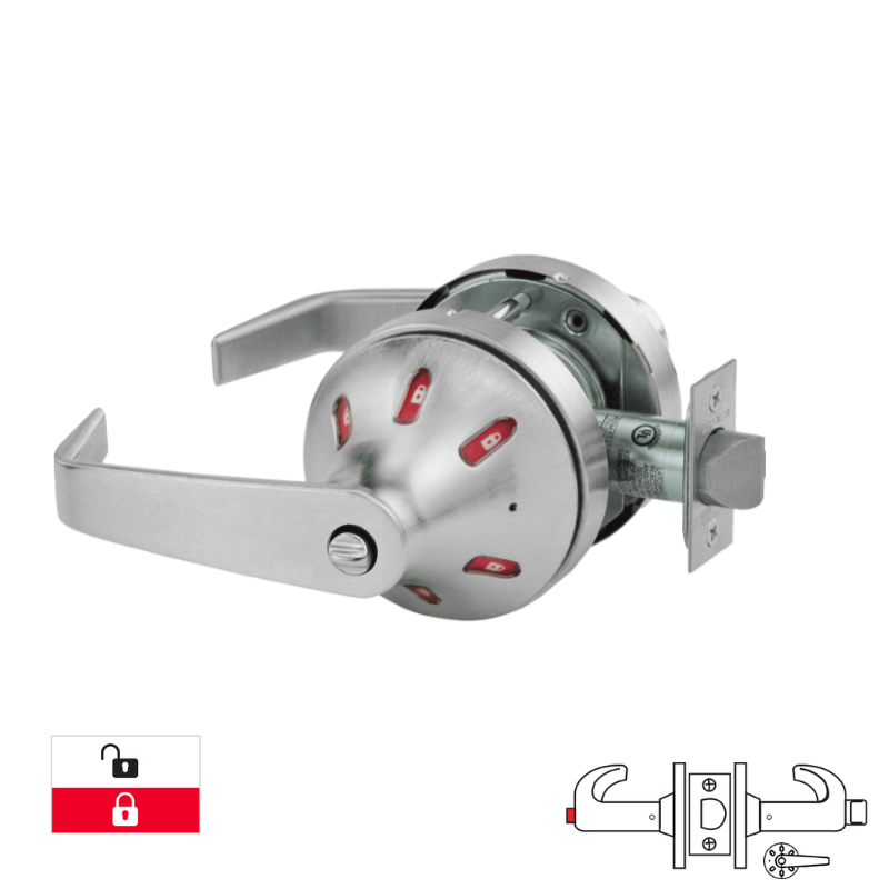 Sargent V60-10XU68-VSLL Hospital Privacy Function Cylindrical Lock, "VSL" Rose, "L" Lever Design, Visual Indicator Trim Outside Only, White/Red, 2 3/4 Backset, 4 7/8 Strike, Non-Keyed, Grade 1